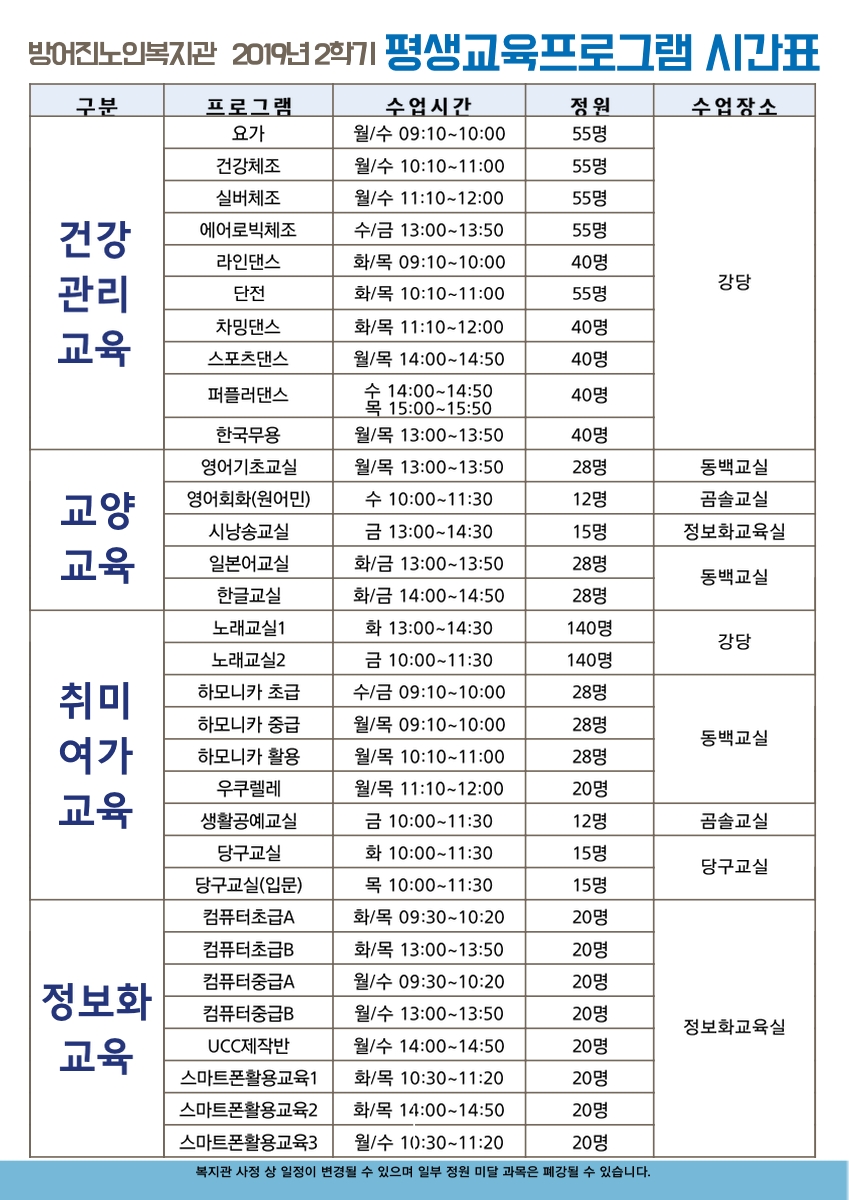 2019³â 2ÇÐ±â Æò»ý±³À°ÇÁ·Î±×·¥ Á¢¼öÀÏÁ¤À» È®ÀÎÇÏ¿© ½Åû¹Ù¶ø´Ï´Ù.