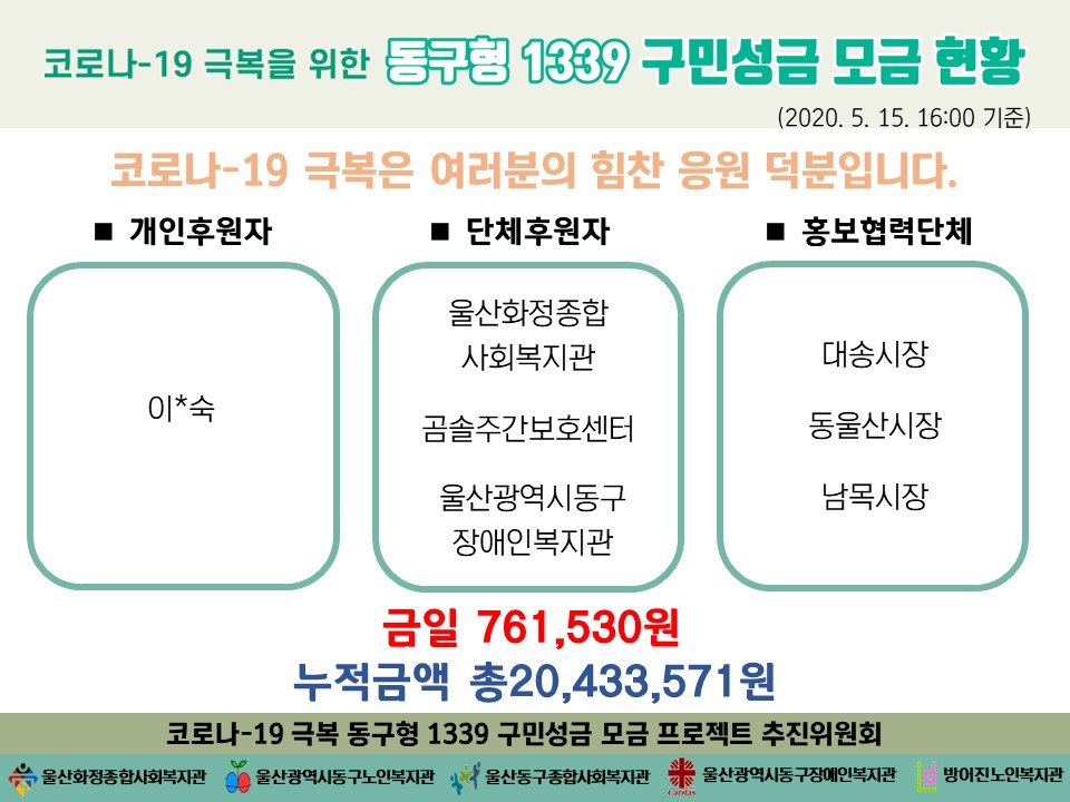 Äڷγª-19 ±Øº¹ ¸ð±Ý ÇöȲ (5¿ù 15ÀÏ 16½Ã ±âÁØ)