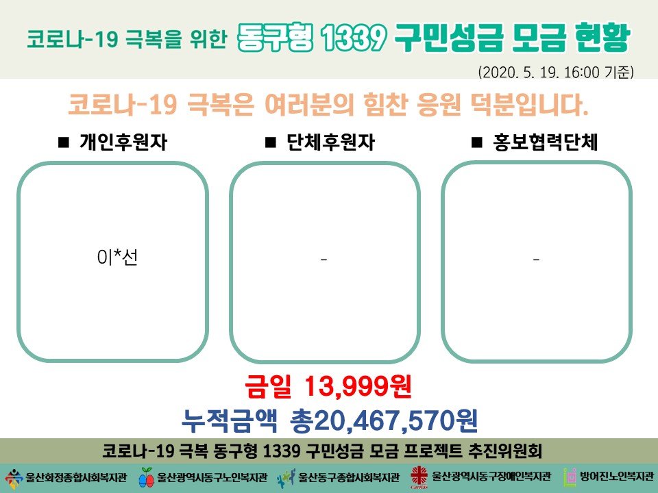 Äڷγª-19 ±Øº¹ ¸ð±Ý ÇöȲ (5¿ù 20ÀÏ 16½Ã ±âÁØ)