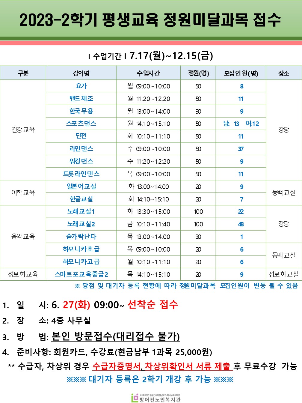 2023³â 2ÇÐ±â Æò»ý±³À°ÇÁ·Î±×·¥ Á¤¿ø¹Ì´Þ°ú¸ñ Ãß°¡ Á¢¼ö ¾È³»...