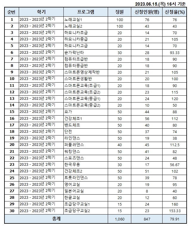 2023³â 2ÇÐ±â Æò»ý±³À°ÇÁ·Î±×·¥ Á¢¼ö ÇöȲ(06.16 ±âÁØ)