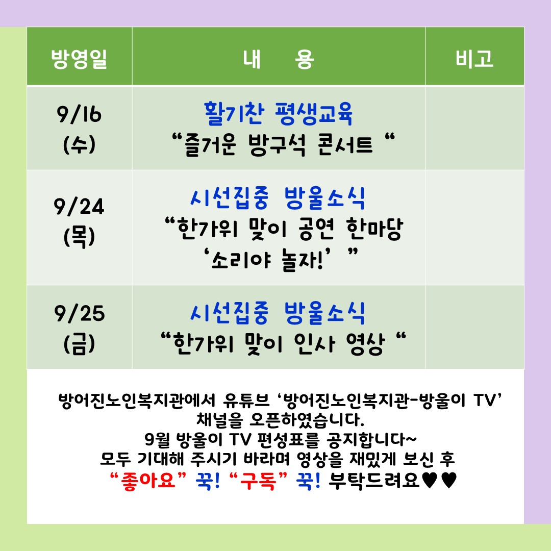 [À¯Æ©ºê 9¿ù Æí¼ºÇ¥] ¹æ¾îÁø³ëÀκ¹Áö°ü ¹æ¿ïÀÌ TV