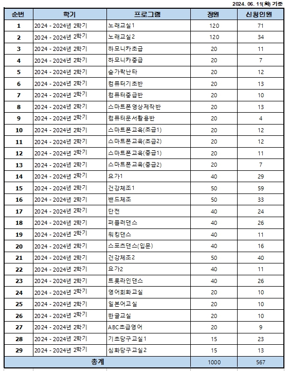 2024³â 2ÇÐ±â Æò»ý±³À°ÇÁ·Î±×·¥ Á¢¼ö ÇöȲ (24. 06. 11 ±âÁØ...