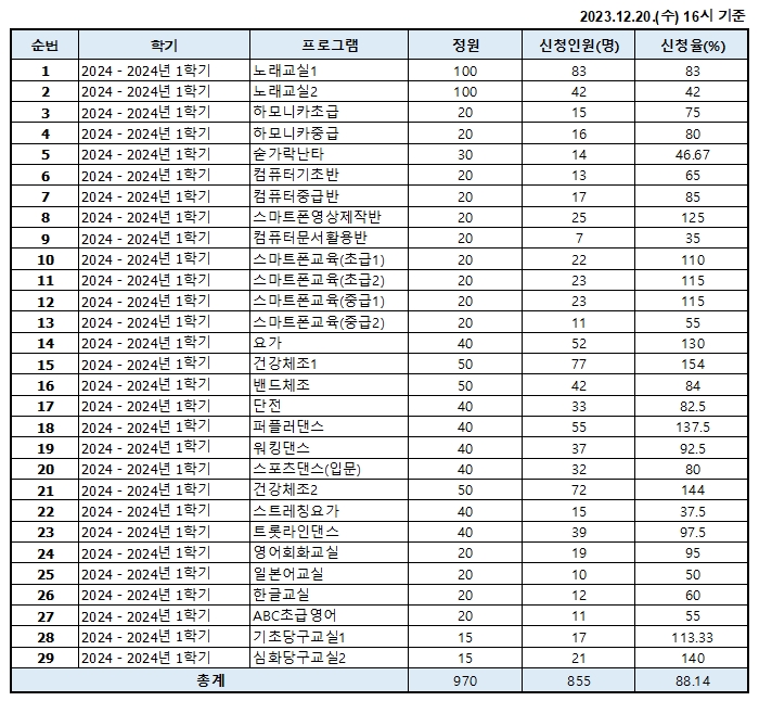 2024³â 1ÇÐ±â Æò»ý±³À°ÇÁ·Î±×·¥ Á¢¼ö ÇöȲ(23.12.20 ±âÁØ)