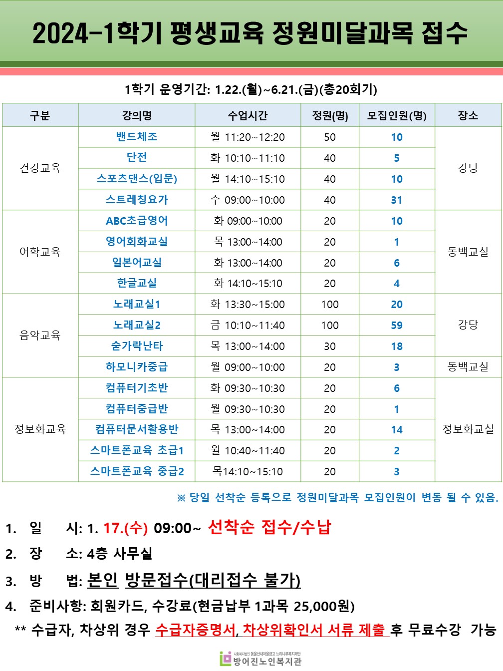 2024³â 1ÇÐ±â Æò»ý±³À°ÇÁ·Î±×·¥ Á¤¿ø¹Ì´Þ°ú¸ñ Á¢¼ö ¾È³»