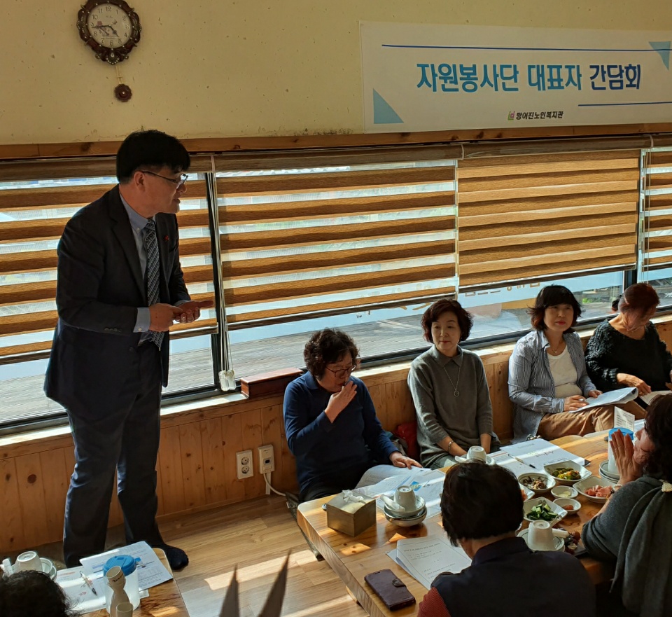 ÇϹݱâ ÀÚ¿øºÀ»ç´Ü ´ëÇ¥ÀÚ °£´ãȸ 2019.10.29.(È­) 11:30 ÀÏ»êÁ¤ »ï°èÅÁ (µ¿±¸ Àϻ굿)¿¡¼­ ÁøÇàµÇ¾ú½À´Ï´Ù.