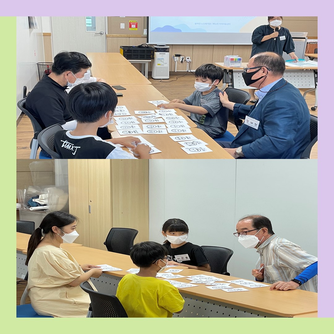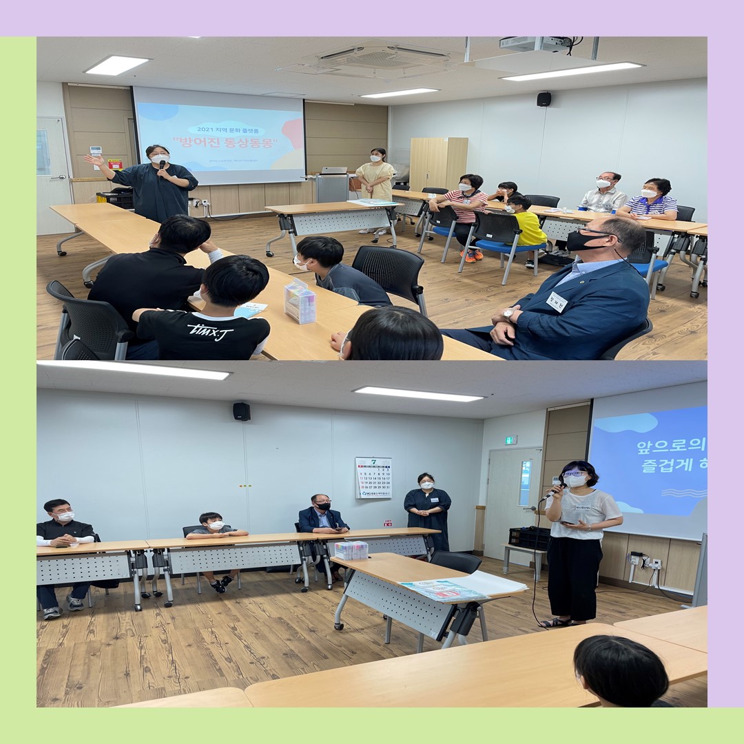 Çѱ¹³ëÀÎÁ¾ÇÕº¹Áö°üÇùȸ, Çѱ¹¹®È¿¹¼ú±³À°ÁøÈï¿ø, ¹®ÈüÀ°°ü±¤ºÎ Áö¿øÀ¸·Î ÁøÇàµÇ´Â 2021 Áö¿ª ¹®È Ç÷§Æû '1,3¼¼´ë ¿ì¸® µ¿³× ¹®È ¼ÒÅë ¹× °ø°¨ ÇÁ·ÎÁ§Æ® - ¹æ¾îÁø µ¿»óµ¿¸ù' ¾î¸£½Å°ú ¾ÆÀ̵éÀÌ Ã¹ ¸¸³²À» °¡Á³½À´Ï´Ù. óÀ½¿¡´Â »ì¦ ¾î»öÇÑ ºÐÀ§±â°¡ ÀÖ¾úÁö¸¸, ¼·Î¸¦ ¼Ò°³ÇÏ°í ¾Ë¾Æº¸´Â ½Ã°£À» °¡Áö¸ç ¾î»öÇß´ø ºÐÀ§±â°¡ ÇÏÇÏȣȣ Áñ°Å¿î ºÐÀ§±â·Î ¹Ù²î¾î ȱâ¾Ö¾ÖÇÏ°Ô È°µ¿ÀÌ ÁøÇàµÇ¾ú½À´Ï´Ù. Ȱµ¿À» ¸¶Ä¡°í º¹Áö°ü¿¡ ¾ÆÀ̵éÀÌ Ã£¾Æ¿À´Ï ÇÑ°á ´õ ¹à¾ÆÁö´Â °Í °°´Ù´Â ¾î¸£½Å°ú ÇÒ¸Ó´Ï, ÇҾƹöÁö¿Í ÇÔ²²ÇÏ´Ï ¸¶³É Áñ°Å¿ü´Ù´Â ¾ÆÀ̵éÀÇ À̾߱Ⱑ ÀÖ¾ú½À´Ï´Ù~ ¾ÕÀ¸·Î ¾î¸£½Å°ú ¾ÆÀ̵éÀÌ ¼·Î ¾Ë°í ÀÖ´Â ¹æ¾îÁøÀÇ ¹®ÈµéÀ» ÇÔ²² °øÀ¯ÇÏ°í °æÇè, ÆîÃ帴 °úÁ¤µé¿¡ ´ëÇØ ¸¹Àº °ü½É ºÎʵ右´Ï´Ù^^