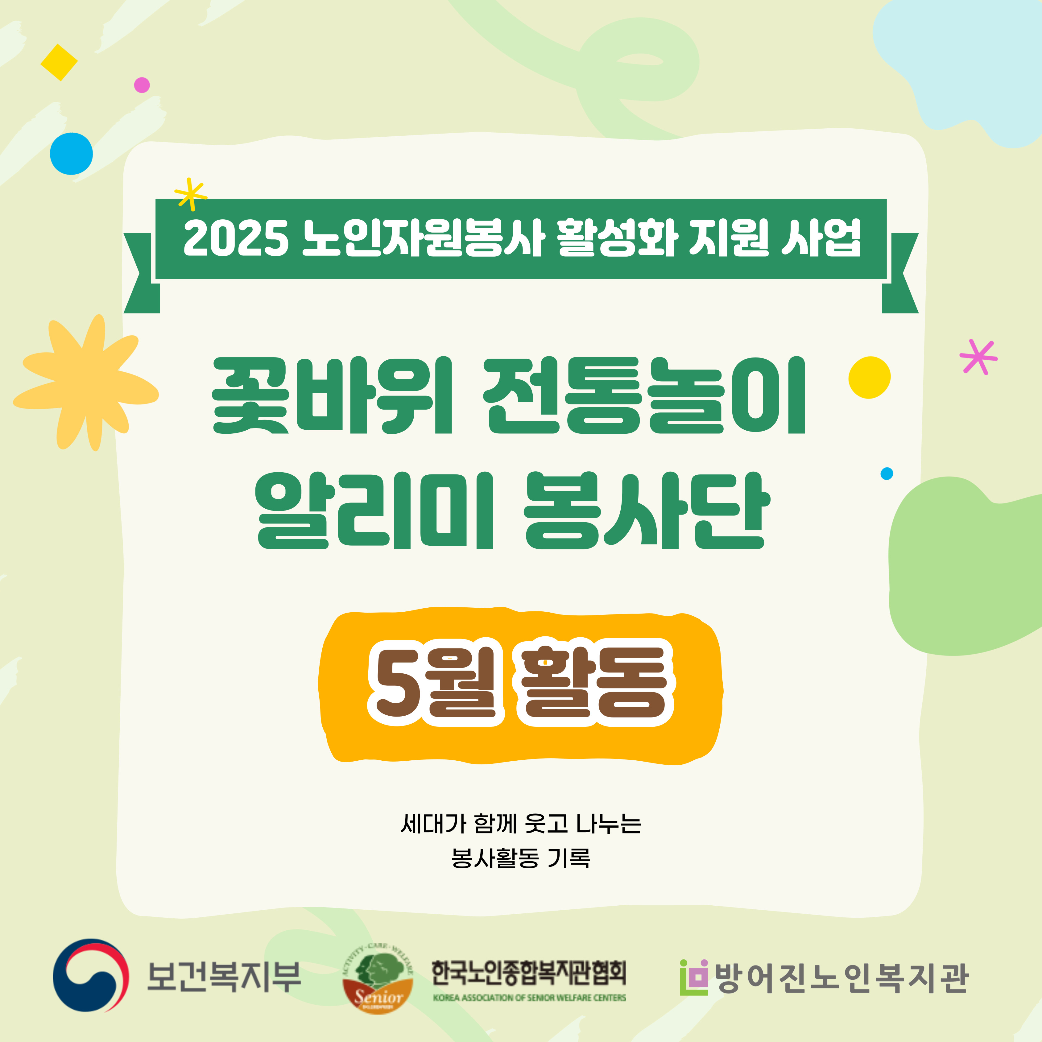 [¿ÜºÎÁö¿ø»ç¾÷] 2025³â ³ëÀÎÀÚ¿øºÀ»ç Ȱ¼ºÈ­ Áö¿ø »ç¾÷_²É¹ÙÀ§ ÀüÅë³îÀÌ ¾Ë¸®¹Ì ºÀ»ç´Ü 5¿ù Ȱµ¿