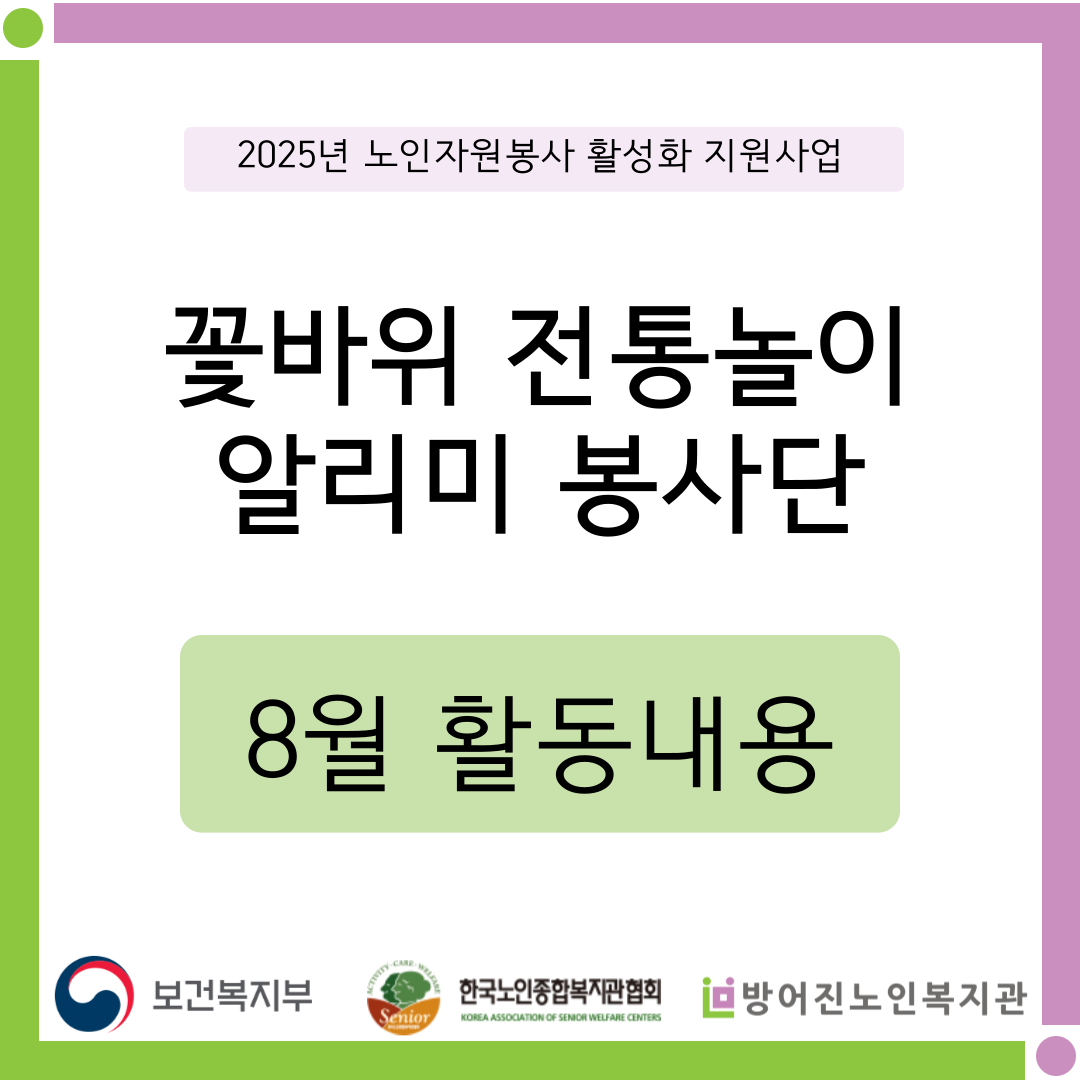 [¿ÜºÎÁö¿ø»ç¾÷] 2025³â ³ëÀÎÀÚ¿øºÀ»ç Ȱ¼ºÈ­ Áö¿ø »ç¾÷_²É¹ÙÀ§ ÀüÅë³îÀÌ ¾Ë¸®¹Ì ºÀ»ç´Ü 8¿ù Ȱµ¿