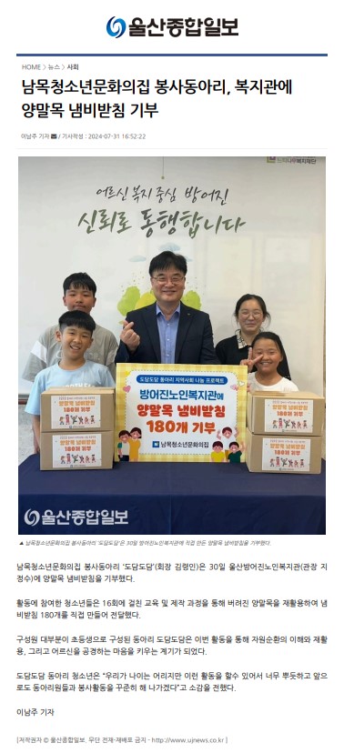 [°æ»óÀϺ¸] ¹æ¾îÁø³ëÀκ¹Áö°ü, ¿ï»êµ¿±¸½Ã´Ï¾îŬ·´ ÀÚ¿ø¼øÈ¯...