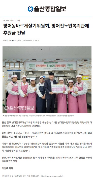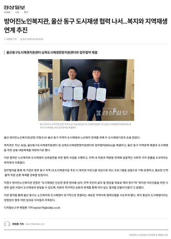 [°æ»óÀϺ¸] ¹æ¾îÁø³ëÀκ¹Áö°ü, ¿ï»êµ¿±¸µµ½ÃÀç»ýÁö¿ø¼¾ÅÍ ¿Ü...