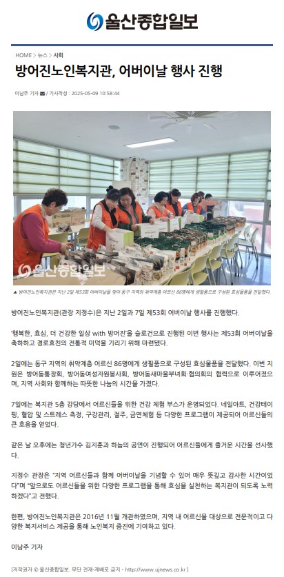 [¿ï»êÁ¾ÇÕÀϺ¸] ¹æ¾îÁø³ëÀκ¹Áö°ü Á¦53ȸ ¾î¹öÀ̳¯ Çà»ç ½Ç½Ã...