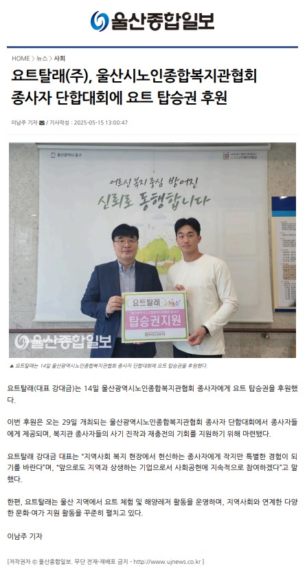 [¿ï»êÁ¾ÇÕÀϺ¸] ¿äƮŻ·¡(ÁÖ), ¿ï»ê½Ã³ëÀÎÁ¾ÇÕº¹Áö°üÇùȸ Á¾...