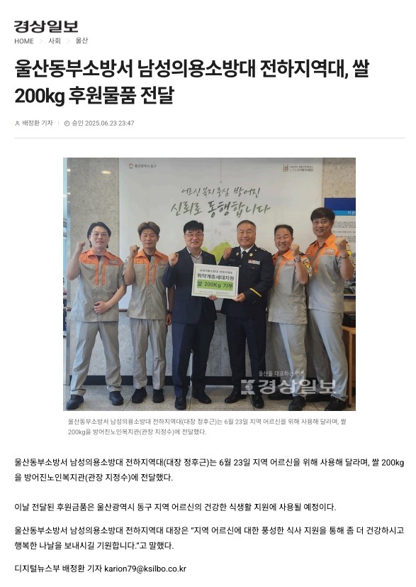 [°æ»óÀϺ¸] ¿ï»êµ¿ºÎ¼Ò¹æ¼ ³²¼ºÀÇ¿ë¼Ò¹æ´ë ÀüÇÏÁö¿ª´ë, ½Ò ...