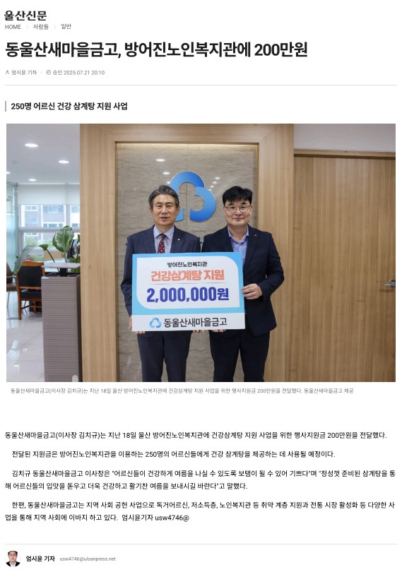 [¿ï»êÁ¾ÇÕÀϺ¸] ¿ï»ê±¤¿ª½Ã³ëÀÎÁ¾ÇÕº¹Áö°üÇùȸ, Á¾»çÀÚ ´ÜÇÕ...