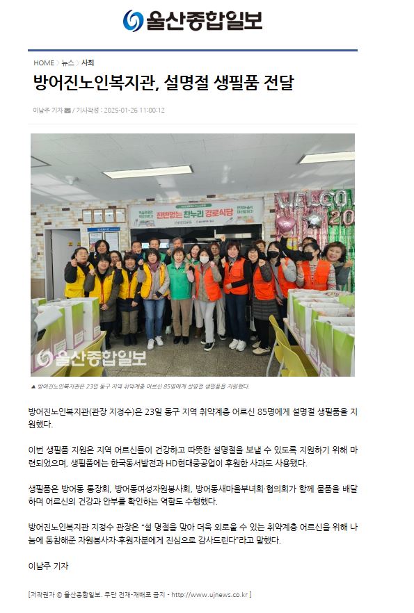 [¿ï»êÁ¾ÇÕÀϺ¸] ¹æ¾îÁø³ëÀκ¹Áö°ü, ¼³¸íÀý »ýÇÊǰ Àü´Þ
