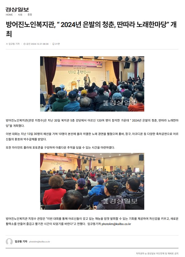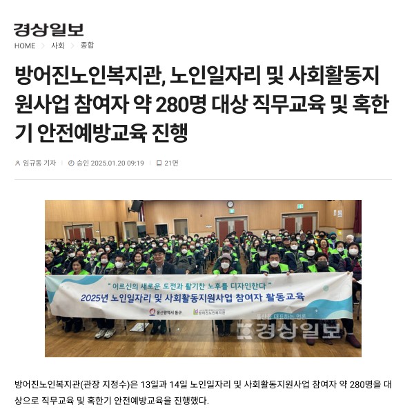 [°æ»óÀϺ¸] ¹æ¾îÁø³ëÀκ¹Áö°ü ³ëÀÎÀÏÀÚ¸® ¹× »çȸȰµ¿Áö¿ø»ç...