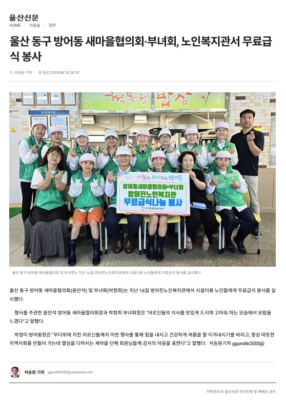 [¿ï»ê½Å¹®] ¿ï»ê µ¿±¸ ¹æ¾îµ¿ »õ¸¶À»ÇùÀÇȸ¡¤ºÎ³àȸ Âù´©¸®°æ...