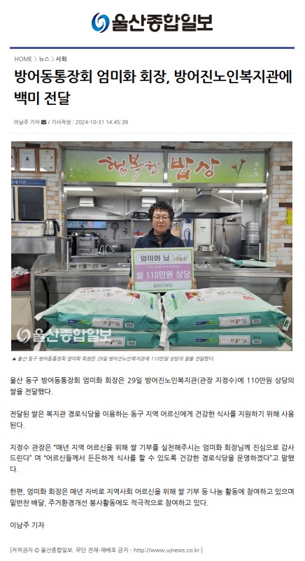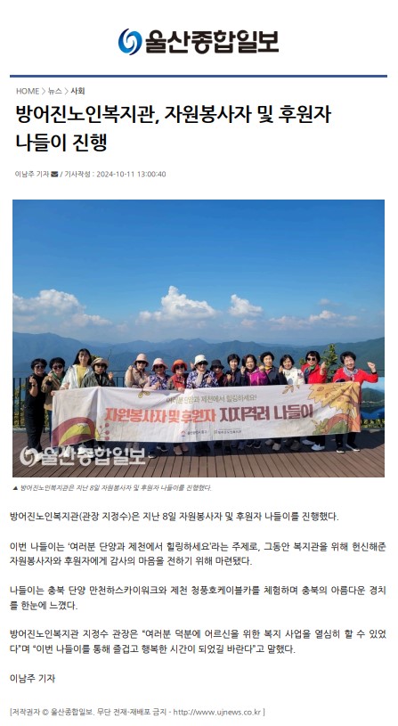 [¿ï»ê¸ÅÀÏ] ¹æ¾îÁø³ëÀκ¹Áö°ü, ¿ï»ê¸ÅÀϺÀ»ç´Ü Àå¼ö»çÁø ÃÔ¿µ...