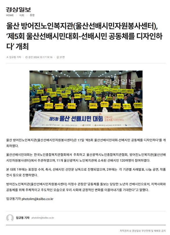 [°æ»óÀϺ¸] ¹æ¾îÁø³ëÀκ¹Áö°ü 'Á¦5ȸ ¿ï»ê¼±¹è½Ã¹Î´ëȸ...