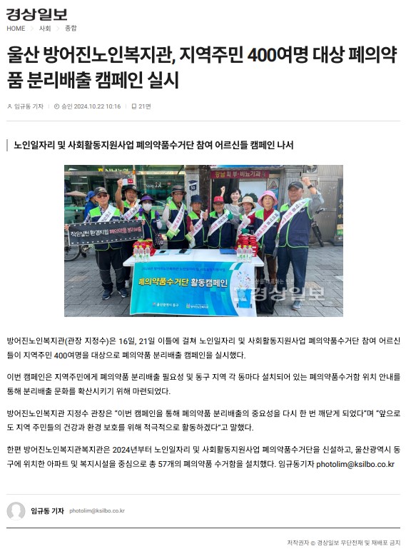 [°æ»óÀϺ¸] ¹æ¾îÁø³ëÀκ¹Áö°ü ³ëÀÎÀÏÀÚ¸® ¹× »çȸȰµ¿Áö¿ø»ç...