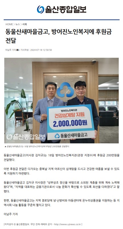 [¿ï»êÁ¾ÇÕÀϺ¸] µ¿¿ï»ê»õ¸¶À»±Ý°í Áߺ¹¸ÂÀÌ ÈÄ¿ø±Ý Àü´Þ