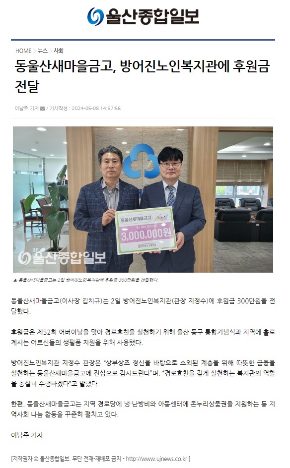 [¿ï»êÁ¾ÇÕÀϺ¸] µ¿¿ï»ê»õ¸¶À»±Ý°í Á¦52ȸ ¾î¹öÀ̳¯ ÈÄ¿ø±Ý Àü...