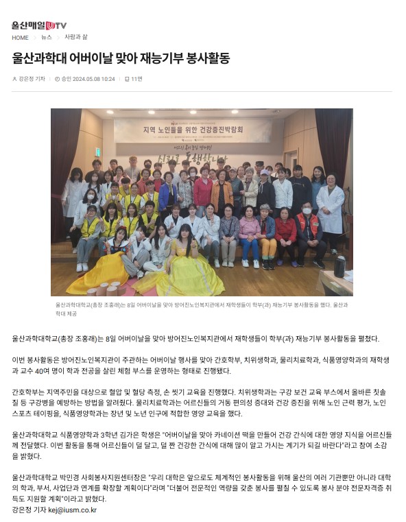 [°æ»óÀϺ¸] ¹æ¾îÁø³ëÀκ¹Áö°ü, ¿ï»êµ¿±¸½Ã´Ï¾îŬ·´ ÀÚ¿ø¼øÈ¯...