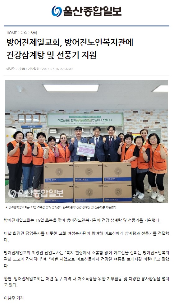 [¿ï»êÁ¾ÇÕÀϺ¸] ¹æ¾îÁøÁ¦Àϱ³È¸ Ãʺ¹¸ÂÀÌ °Ç°»ï°èÅÁ ¹× ¼±Ç³...