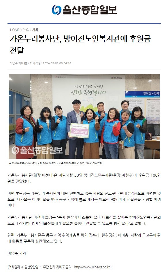 [¿ï»êÁ¾ÇÕÀϺ¸] °¡¿Â´©¸®ºÀ»ç´Ü ¾î¹öÀ̳¯ ÈÄ¿ø±Ý Àü´Þ